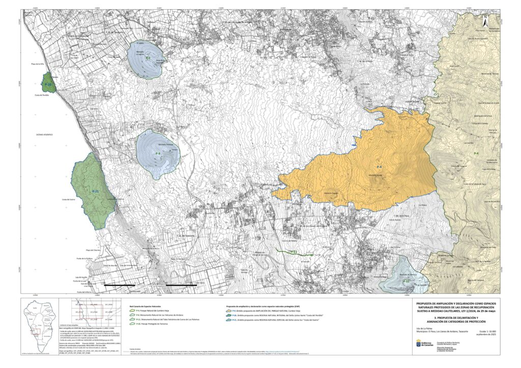 - Public consultation for national park expansion – The Canary Islands Government have released the draft bill for the expansion of the Cumbre Vieja national park, to include the volcanic cone of Tajogaite and parts of the lava flows and lava deltas (310 hectares), out for public comment. The public have 20 days to submit any questions, comments or allegations. Tierra Bonita have submitted objections to the bill, saying it omits guarantees for those affected, among other issues. A new map of the proposed protected area has been shared by the Canary Islands Government.